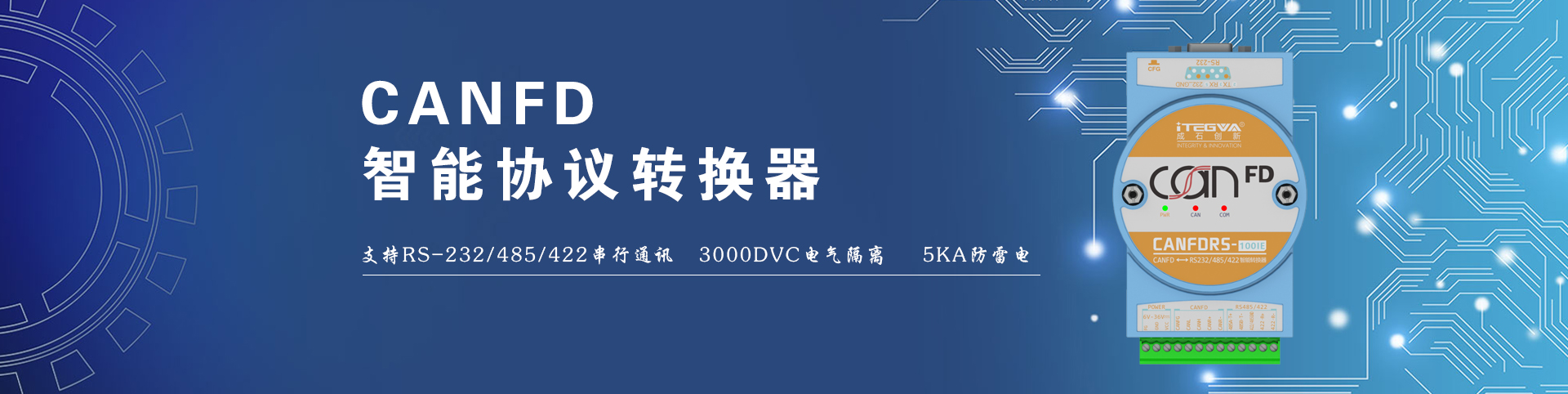 高性能CANFD至RS-232/485/422雙向智能協議轉換器